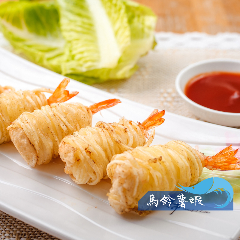 綿密馬鈴薯泥搭配鮮彈蝦仁,特殊線型裹粉處裡,金黃外皮一口咬下,美味營養兼具~